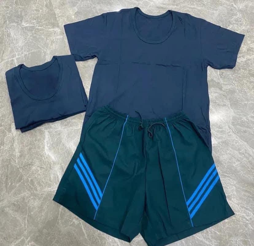 Phần áo thun được thiết kế cổ tròn cơ bản, tay ngắn thoải mái, dễ mặc và không kén dáng. Form áo gọn gàng, giúp người mặc cảm thấy dễ chịu khi vận động hoặc sinh hoạt hằng ngày. Quần short đi kèm có thiết kế đồng bộ, nổi bật với chi tiết sọc xanh dương ở hai bên, tạo điểm nhấn sinh động và tăng thêm vẻ thể thao, năng động cho cả bộ trang phục. Sự kết hợp màu sắc hài hòa giúp bộ đồ không bị đơn điệu mà vẫn giữ được nét khỏe khoắn riêng.